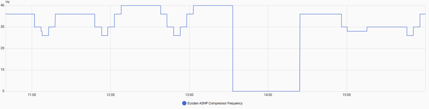 Yes, interesting. I’m guessing that the target flow temperature is nowhere near the 40c it reached? One would expect it to drop below 25Hz, but it revs up in response to the low discharge temp.. Well… that is what mine does.