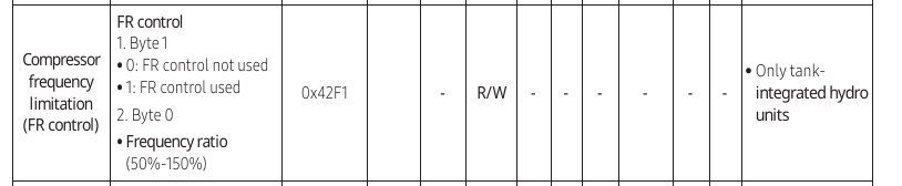I’m not quite sure that I understand your question (maybe because I don’t use HA), but are you saying that you succeeded in writing a value to 0x42F1? Based on the discussion on the Contribution: Samsung ASHP NASA link <-> MQTT bridge (Home Assistant) thread, I had been under the impression that the only Message Addresses we could write to were those associated with FSVs (like the 0x40A7 you mention for #5051). Personally I use SNET-Pro2 v1.14.3 to reset my FSVs (on my laptop), as the packet syntax for outgoing messages is a bit daunting (all those 0x55555555555s…)