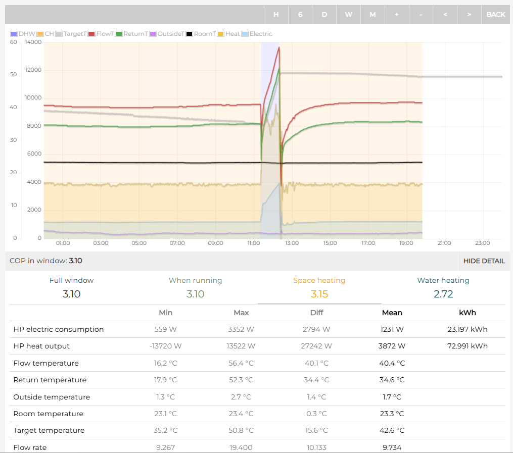 With DHW I didn’t notice any signific COP increase between 30Hz (min FRC) and 45Hz (100%). So I’ve set 356 for FRC when heating water.
