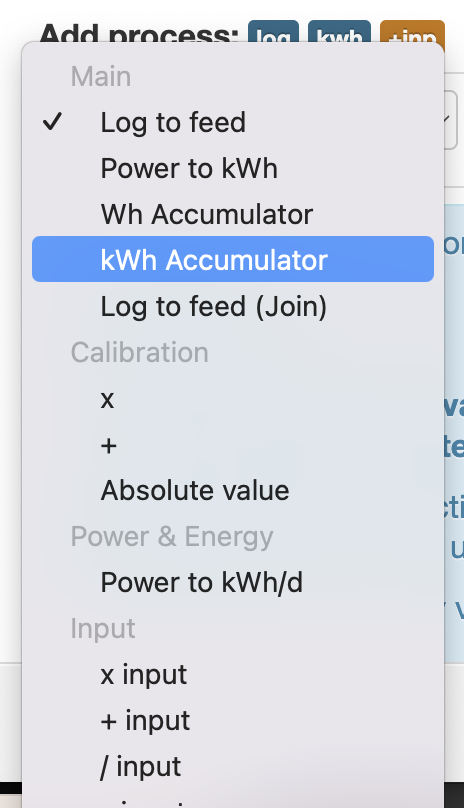 The last Power to kWh only has a drop down list (Create New has disappeared) with no option for heatpump_heat_buh_kWh.