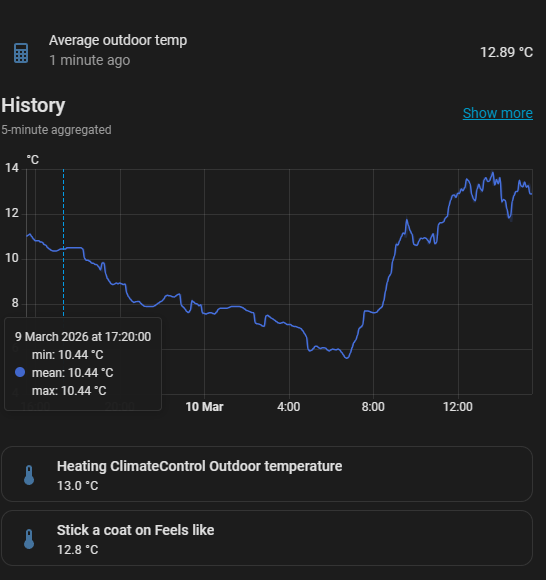 This automation will reference the internal thermostat every 30 minutes and then tweak the flow temperature by 1 up or down to help keep the room temp within the ideal mark of 20.5 and 21.5 degrees C.