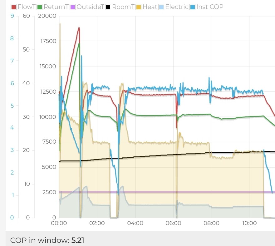 I’ve never seen the kinds of COP values a lot of you report but I’m not chasing it either. I was always under the impression that heat pumps ran low and slow for best performance. Mine doesn’t do that unless it’s between 2c and 4c outside.