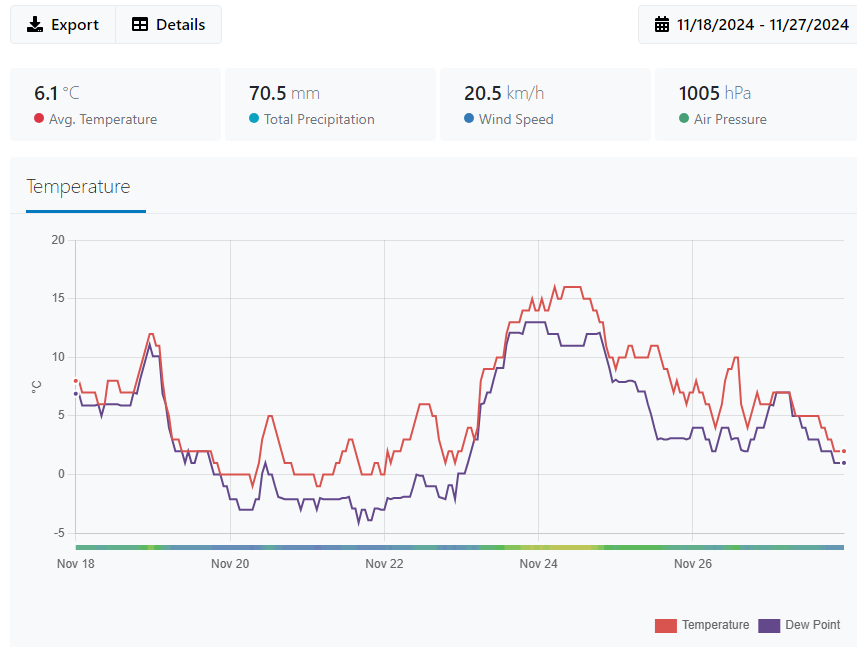 This is my local weather station and from this simple dew point and temp chart you can predict that Dewpoint Hell happened when all of the following were true;