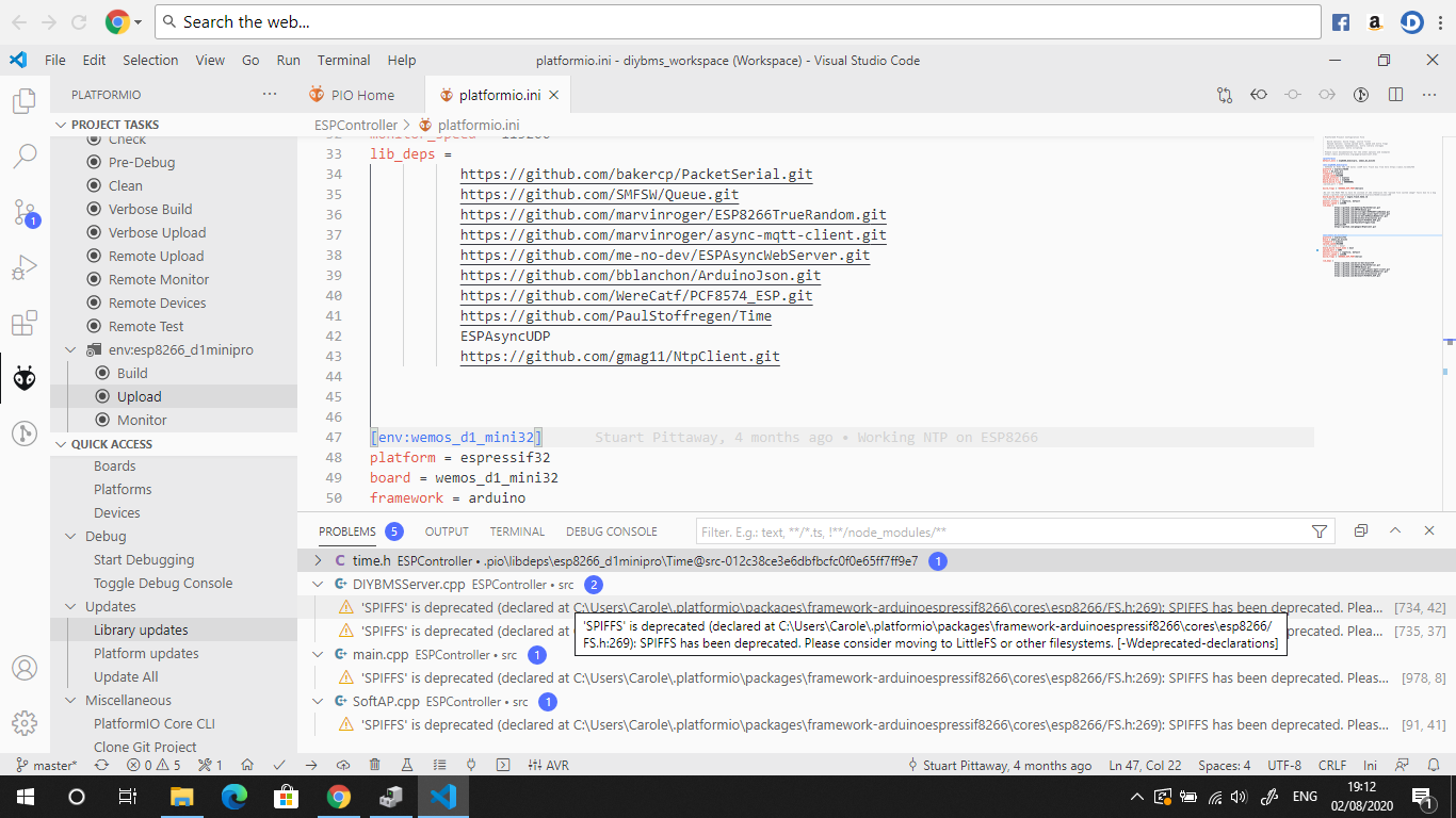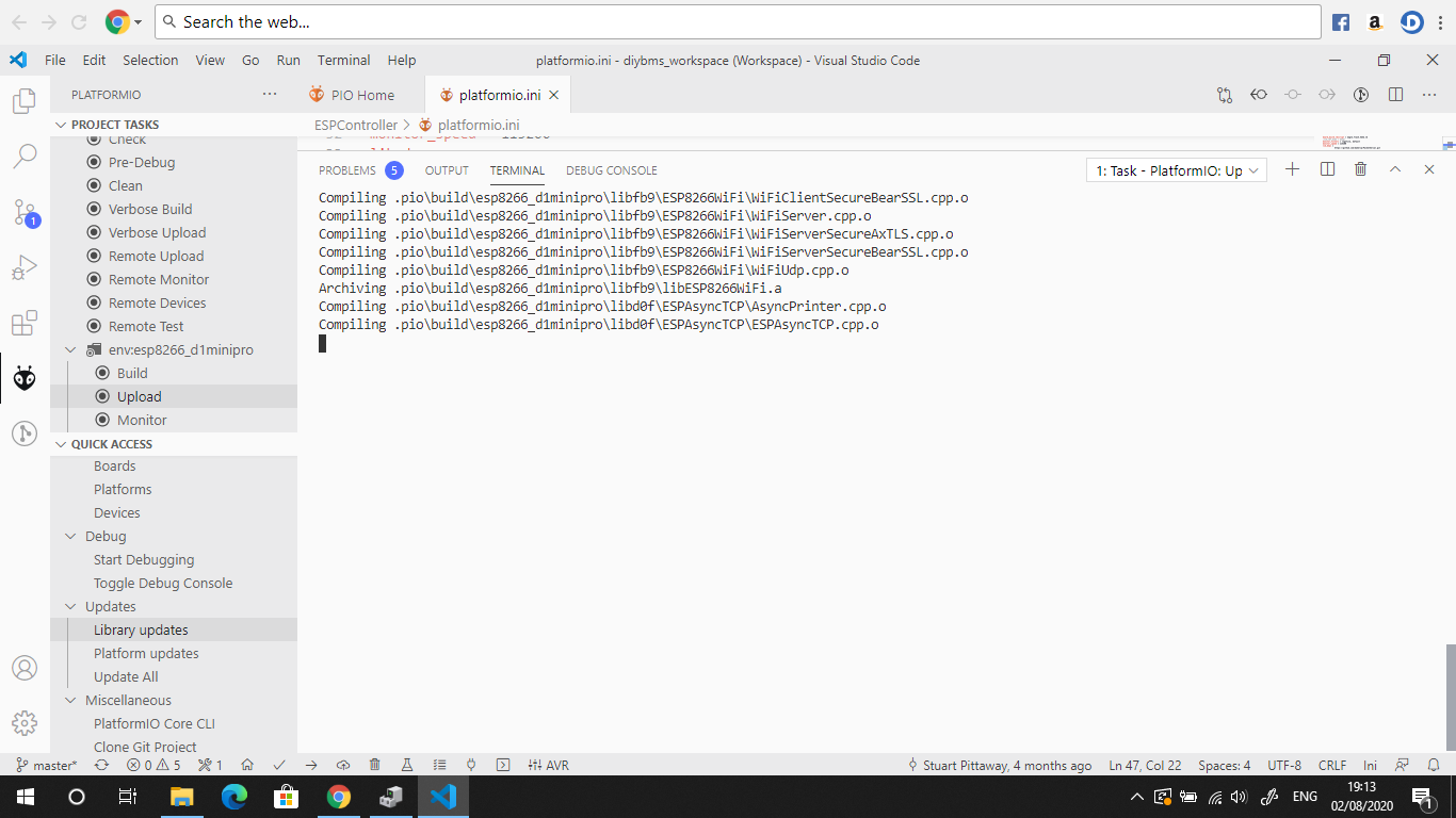 I am getting the following problem when i upload in platformio.