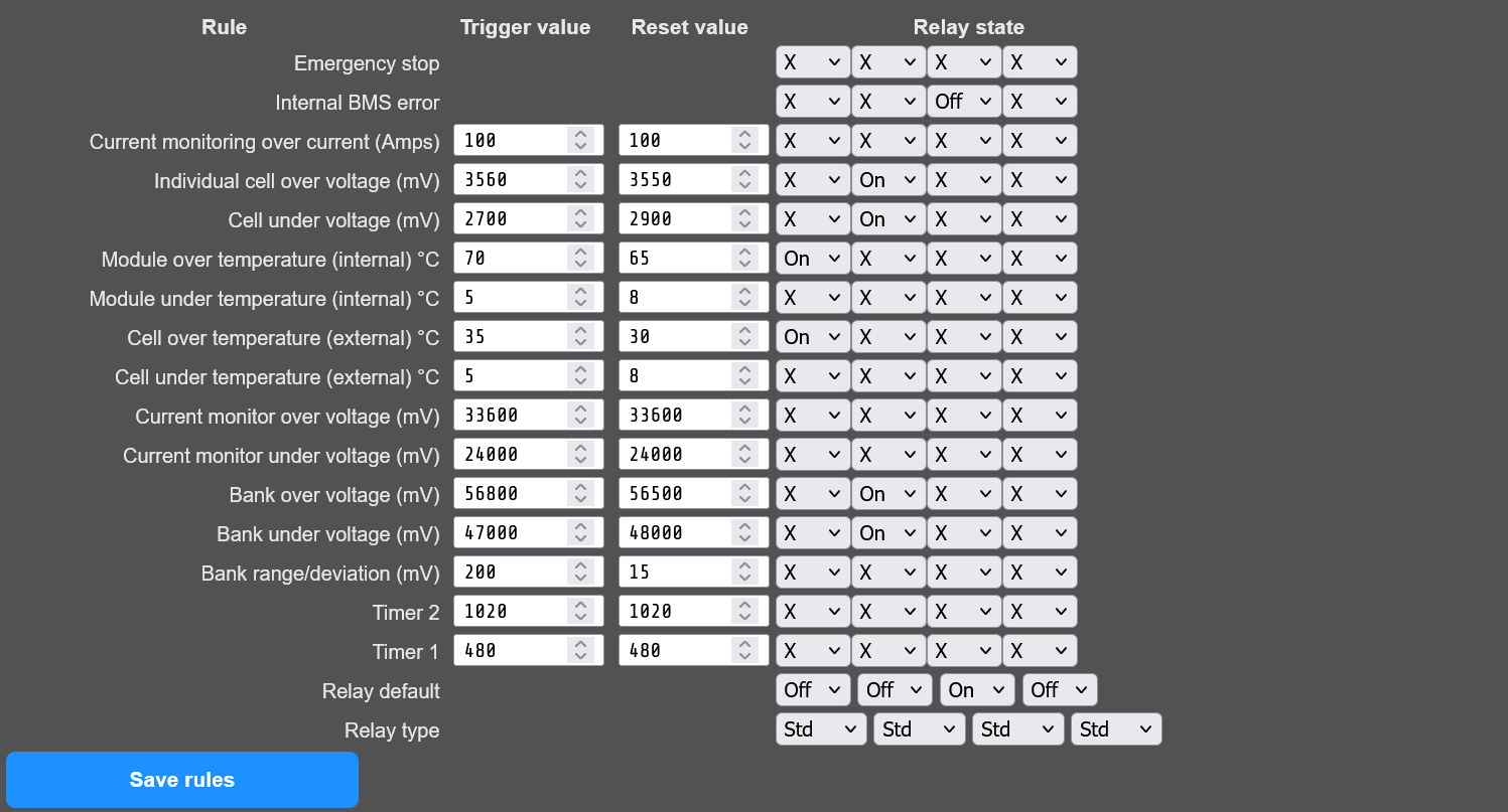 There is a check in the code which runs before any data is sent on the can is - it basically checks the BMS is in a safe position/configuration including the rules.