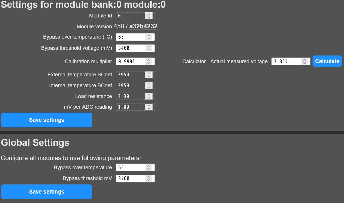 Here is my settings for module 1 but all the same for other module except calibration that i did.