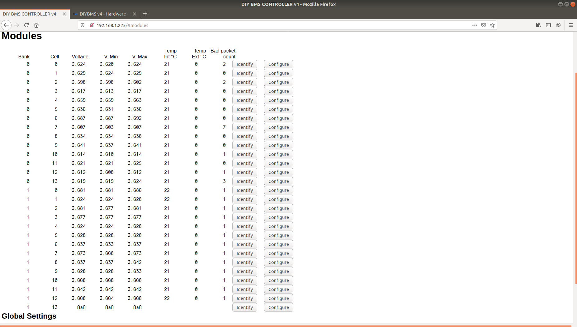 i then used platformio to flash the controller and it then connected to the cell boards green leds āyehhhhā