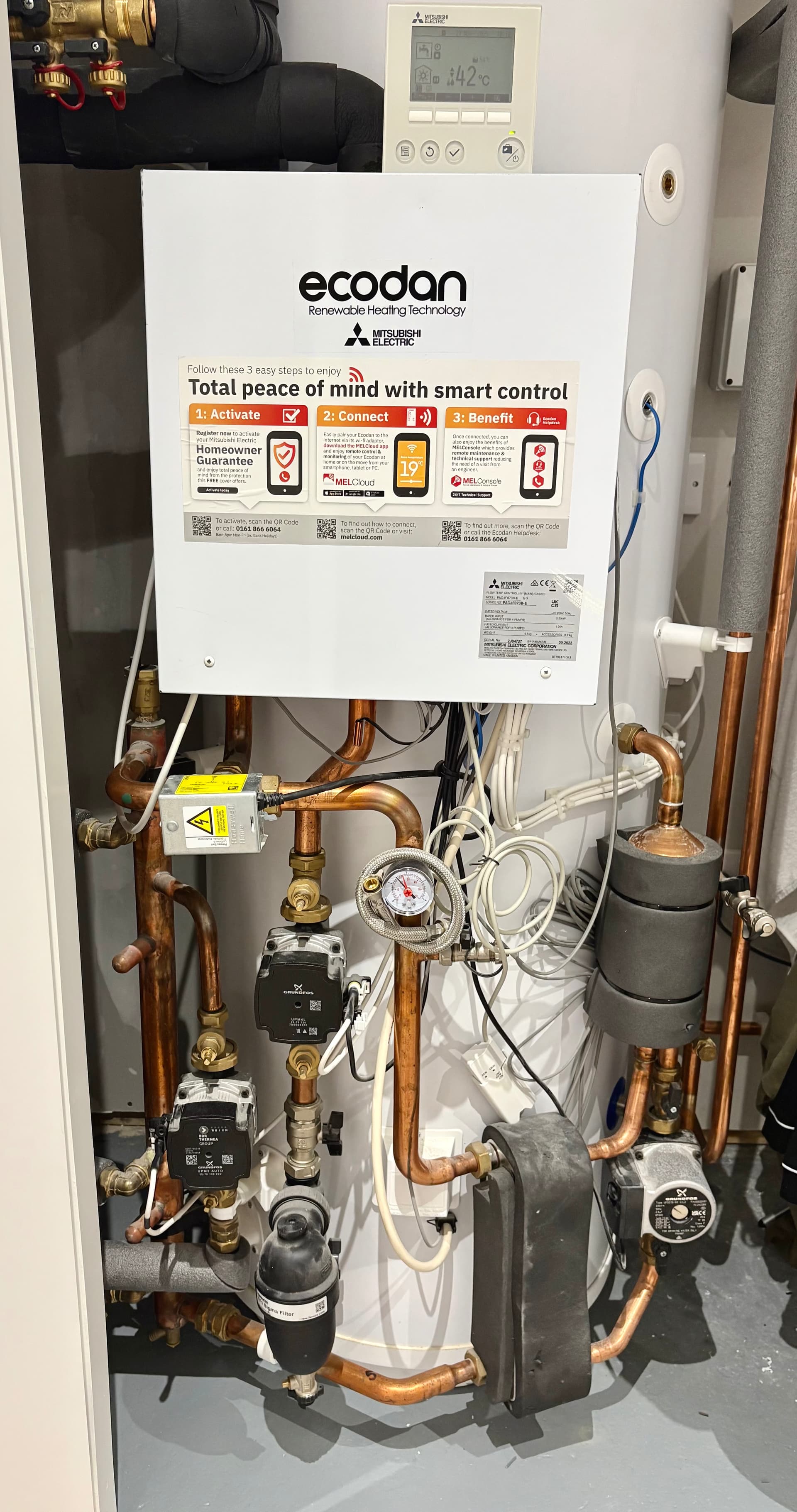 I’m in a new build property, 220m2, single floor. We’ve had an Ecodan 11.2kw installed. We’re running two zones, one ufh, and the other is radiators in the bedrooms.