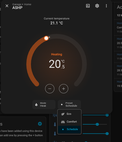 Once all that’s in place, the climate entity will show the relevant HVAC modes (Heat, Cool, Auto).