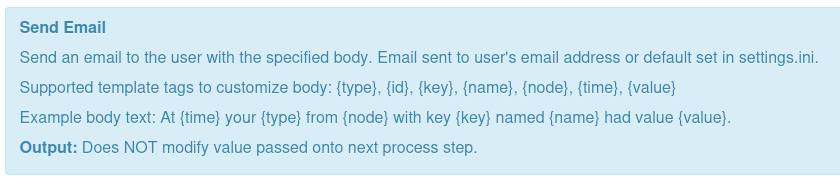 With the changes to the email setup in the latest version, the instructions for setting up email need to be changed in the information pane when adding an email process to an input.