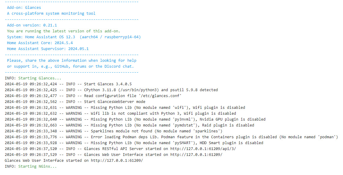 Brian or anyone else, can you help please. I’ve loaded Glances, set a user name and password in the configuration, restarted HA, but when i start Glances I’m getting a 502: Bad gateway error code.