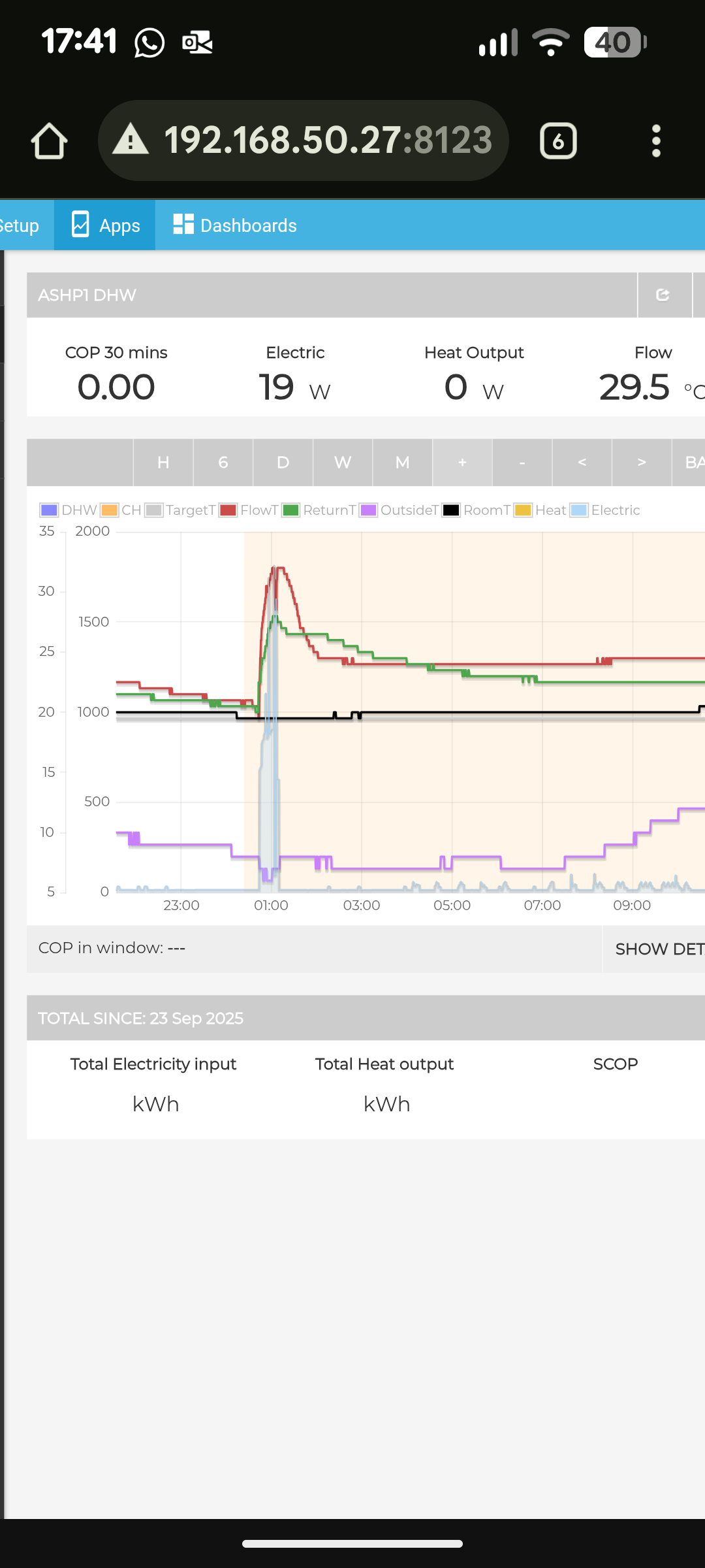 After a few days playing I’ve got my first graph. Nice. Luckily DHW was running so I could monitor for any issues.