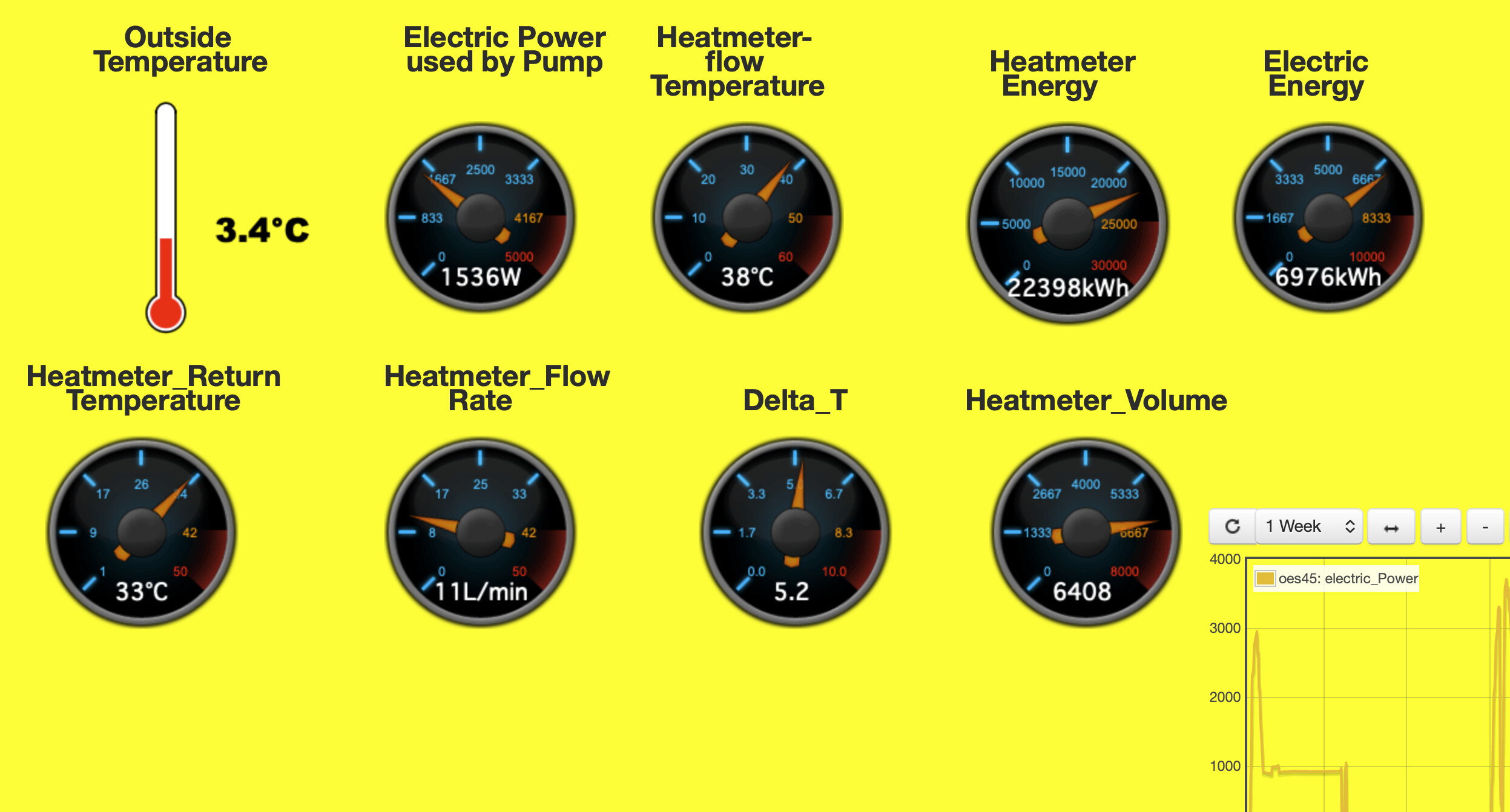 Outside temperature here has been just below 1C all day, snow lying, system running continuously at 34C flow control (in practice the system still adjusts for flow between 32.5 and 34.5C) at 7 litres per minute, power used is a fairly steady 650 Watts.