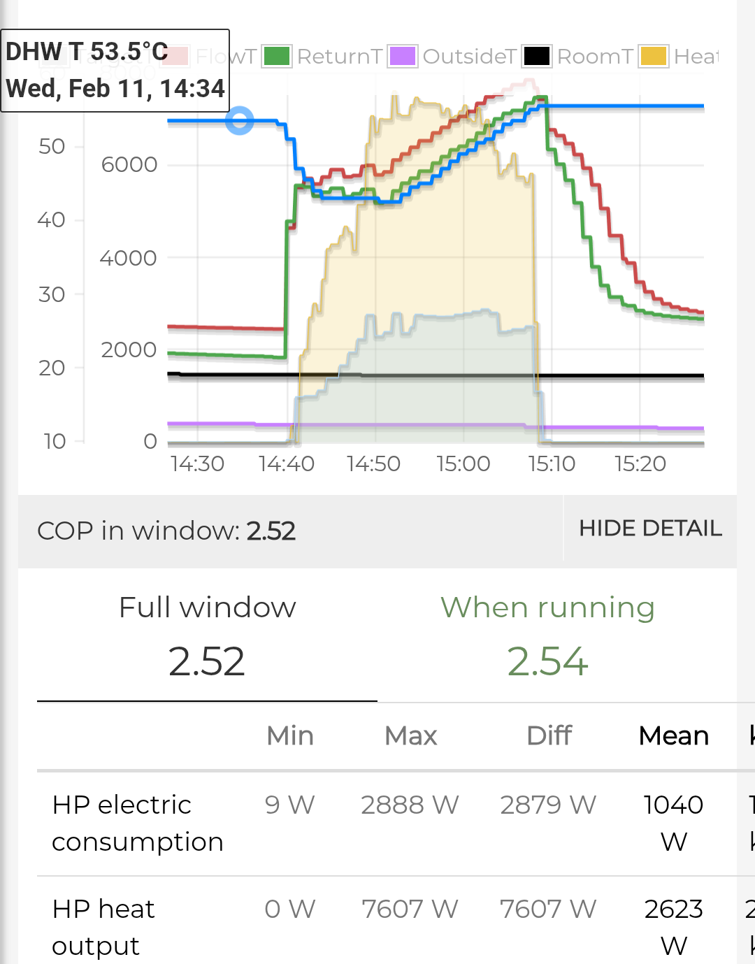 Fwiw, Iâve noticed that the 5 kW Arotherm â which produces more like 7 kW at full bore â can keep maintain a store temperature enough for my 38° showers, at 8 L/min flow, more or less indefinitely. Different story for my partnerâs ~44° showers (the blending valve is set to max, 48°, but itâs only 44° when the water reaches the shower head). But neither of us are types who just stand in the shower contemplating life, the universe etc.