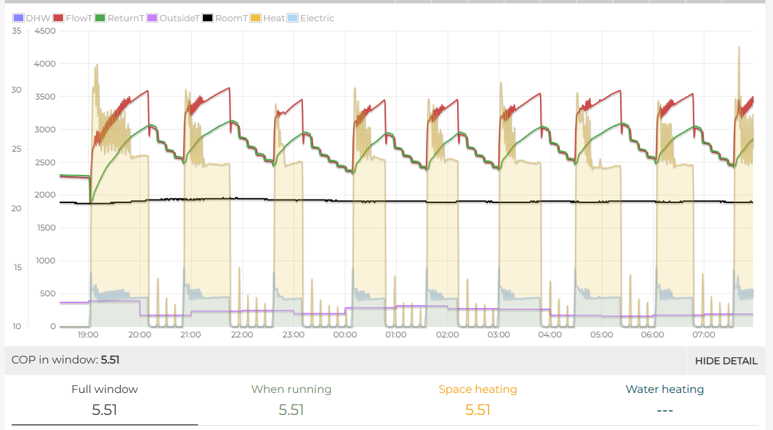Your type 1 cycling, I call it “cycling on room temp when the weather compensation curve is set too high” is where most people loose efficiency today. This Electrification of heat example is an exhibit A of this much less than optimal cycling, a lower weather compensation setting (lower flow temperatures) resulting in longer on periods would deliver much better results than the COP of 2.8 seen here, this is discussed in more detail here Analysis of Electrification of Heat trial data — OpenEnergyMonitor 0.0.1 documentation