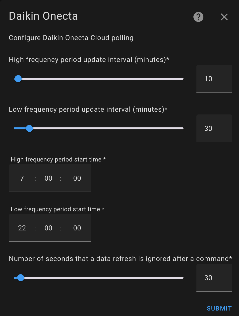 This is totally separate from the polling interval gathering data from the Onecta API.