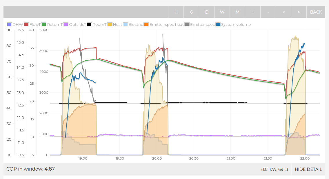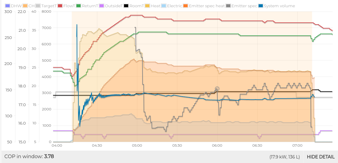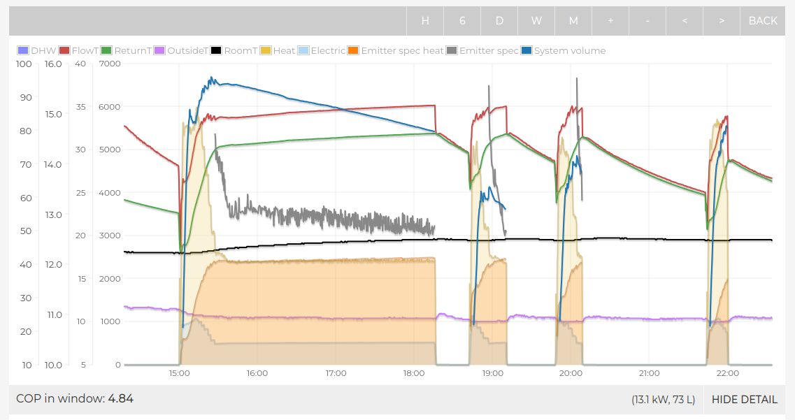 It looks like I regularly lose 20-25% of my 100L capacity at the minute, I assume through the bedroom TRVs shutting off.
