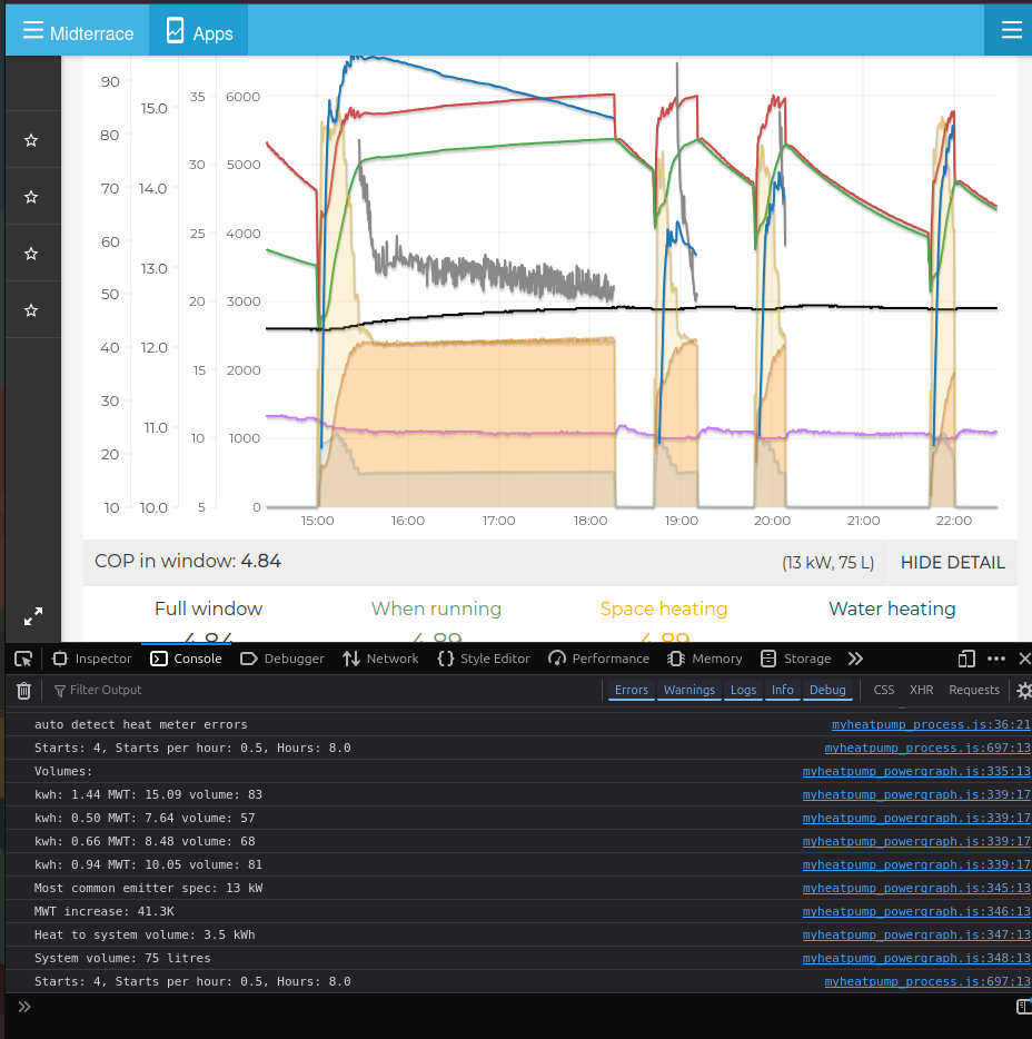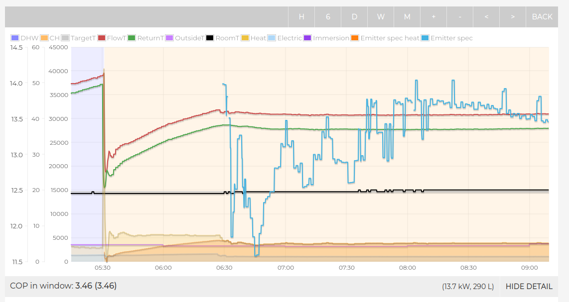 It really needs some way of filtering out the spikes at the end of hot water cycles as that really throws the result e.g 290L here.
