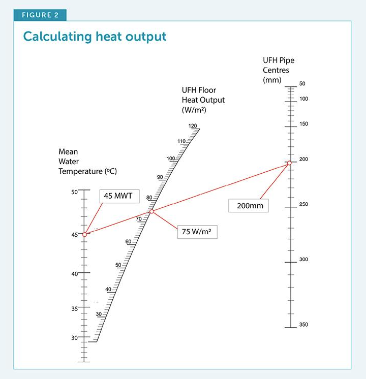 Another factor is the “n-coefficient” as defined by EN 442, usually 1.3 for most radiators. I’ve struggled to find a suitable value for underfloor, but one source suggests 1.15 with this chart.