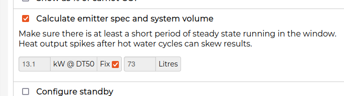 Interestingly the radiator capacity seems to be around 13 kW at the moment, down from 15/16 kW last year which is a bit strange…
