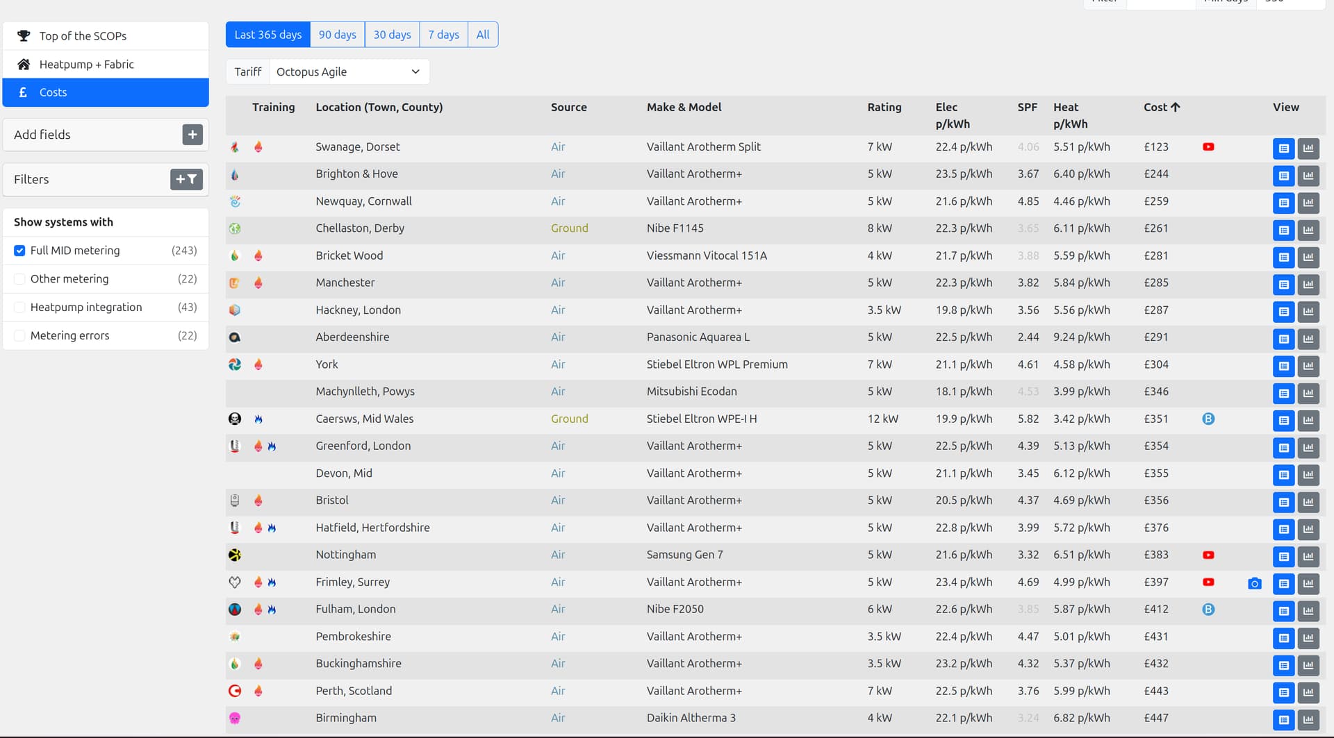 I think it would be really useful if the home page (heatpumpmonitor.org) listed the Watts/C or even Watts/C/m2 for the various installations. How many watts does my property need to raise it 1C in temperature. This would give an indication of the property’s insulation performance, which is tangible and improvable. The COP, while it is an understandable value, it is a measure of the heating system performance not the property. I understand that changing the weather comp will affect the COP, so there is a link to the property thermal efficiency inherent in COP & SCOP.