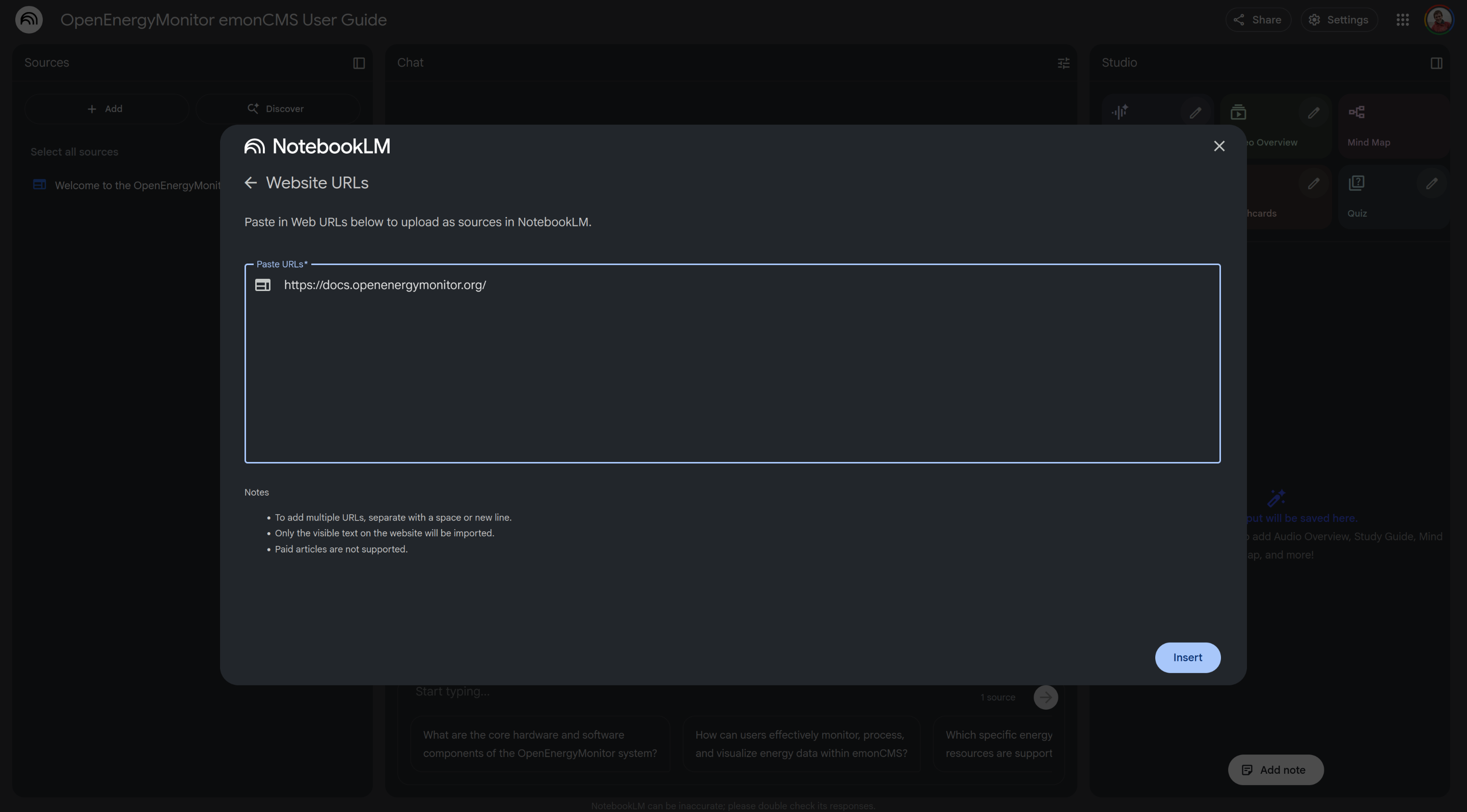 I am experimenting with google NotebookLM which is a AI notebook that you can add reference material to and then interrogate your sources! I have only had it a day and it looks like it is going to be very useful for getting the best out of my heat pump. I’ve added the manuals and other useful sources of info and I thought it might be useful to add the emoncms instructions as well but i cant just add a website unfortunately!