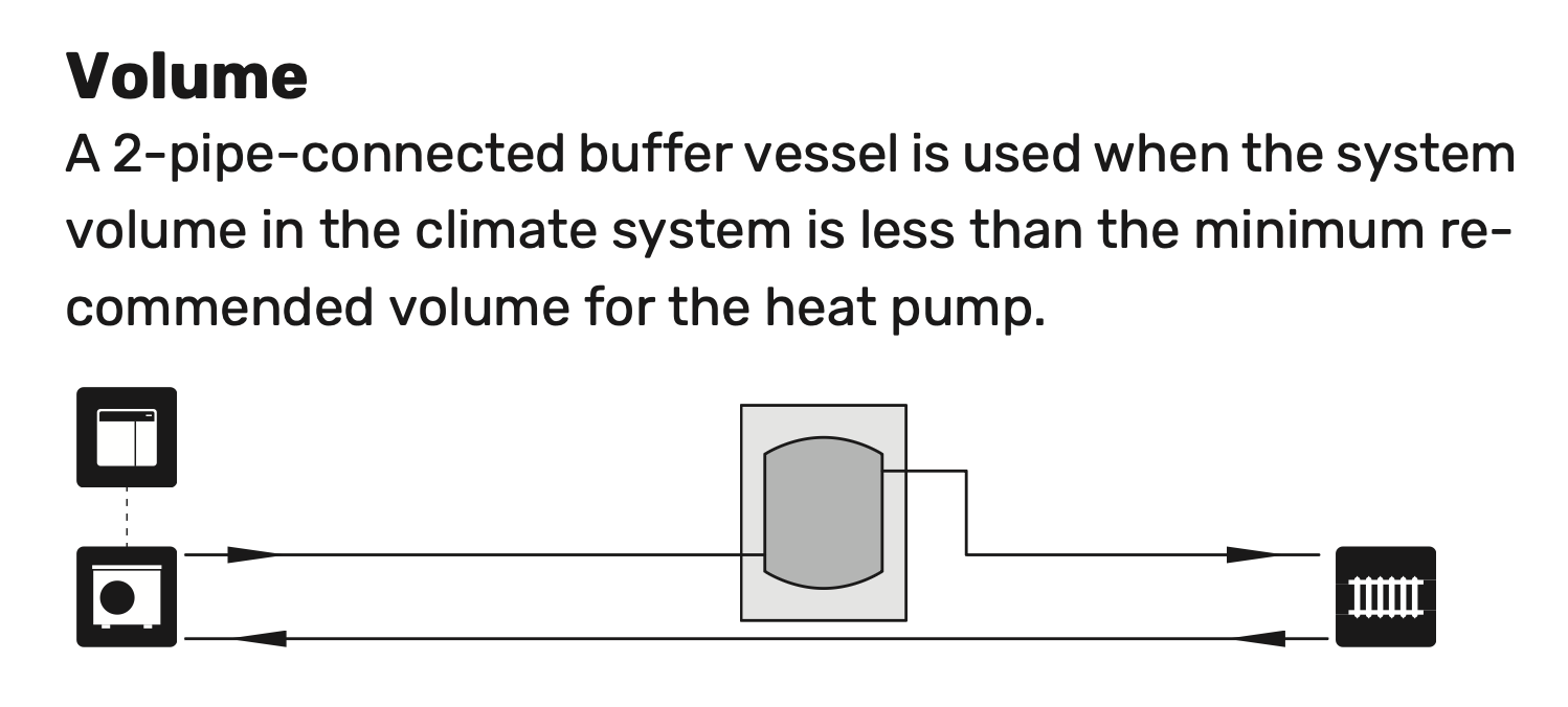 Increases the thermal inertia of the circulating fluid and thus reduces heat pump cycling frequency