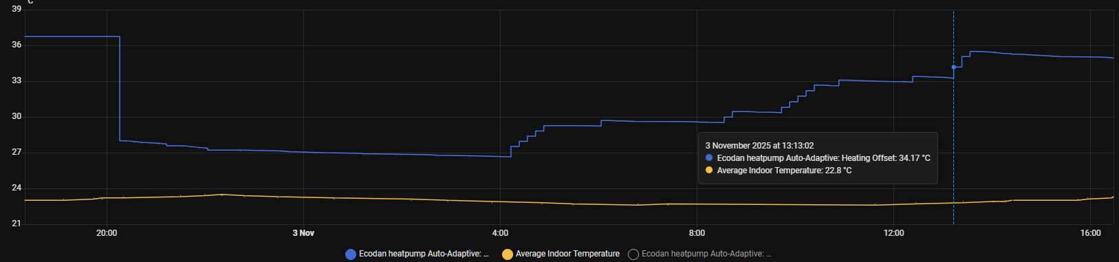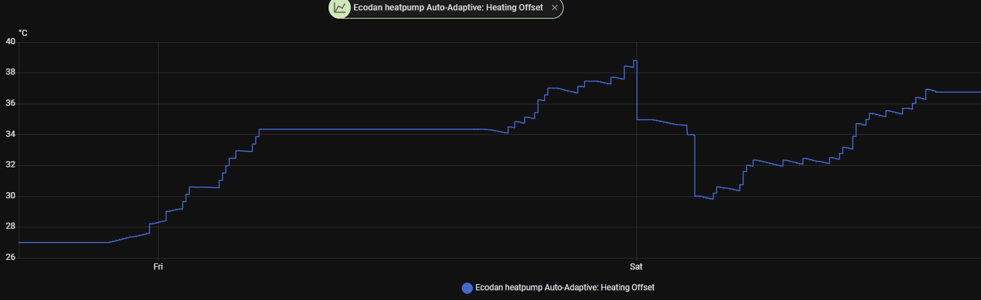 Between Fri and Sat I had max temp set at 35°C. Then set to 40°C Friday evening as a test and after that i played with settings to get it lowered again. After Saturday my setpoint has been lower than current room temperature, but still feed temp increased.