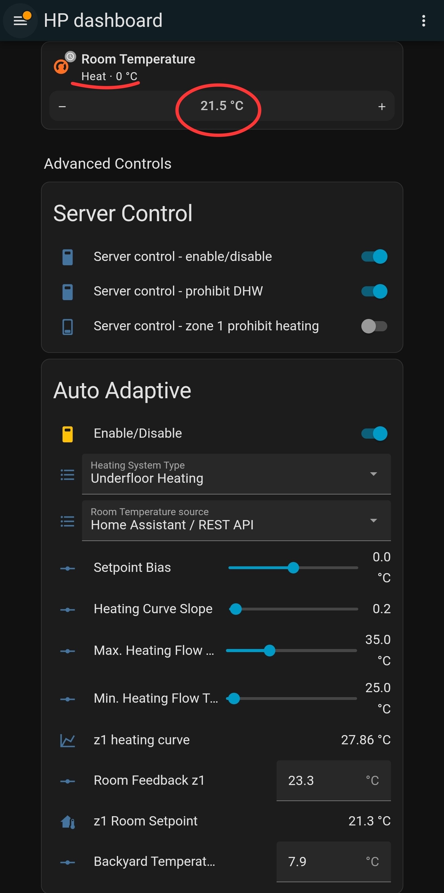 The room feedback is used instead when selecting home assistant / rest api. The 2nd red circle can be changed, see step 2+2 hoe to sync to target (setpoint).