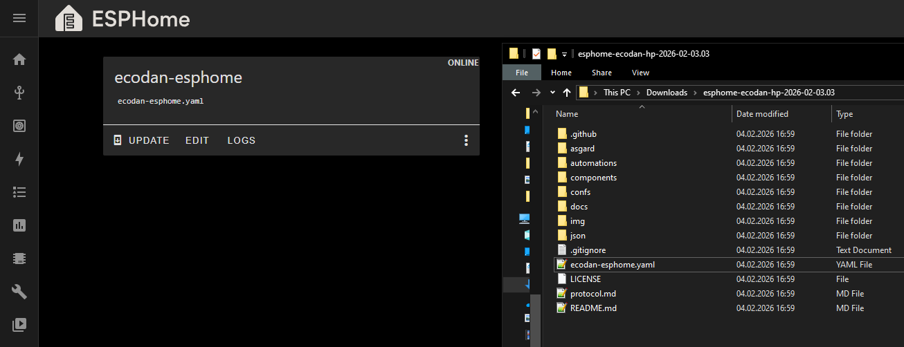 it’s available in pre-release Release Major release (Asgard stand alone mode) · gekkekoe/esphome-ecodan-hp · GitHub