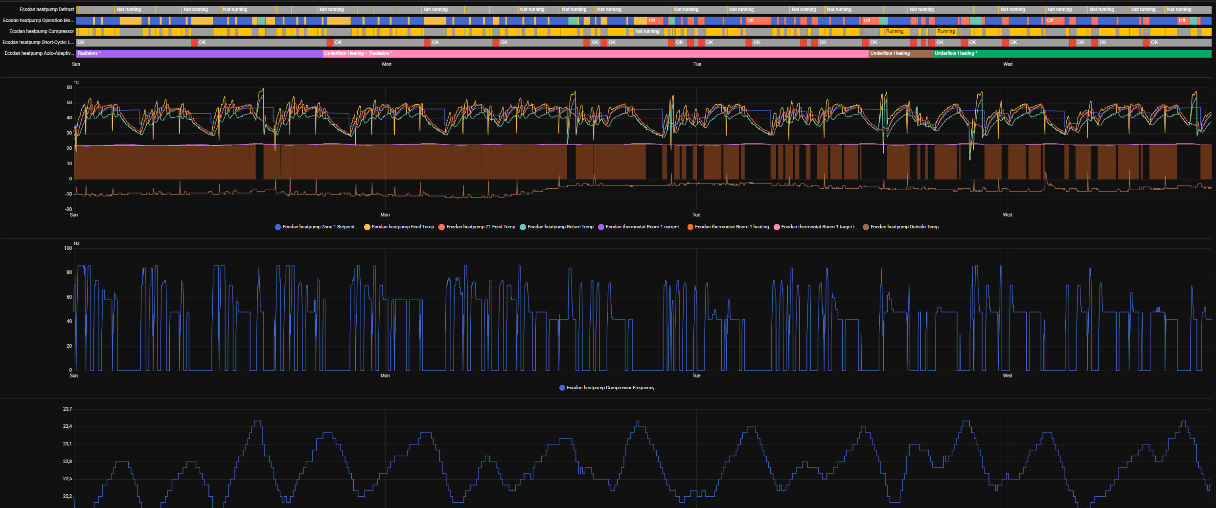 Tried also silent mode lev1 but that still kept compressor topped at 48Hz, amb -7C. Good thing is that this can be set on the run, at least on FTC6. If there would be a way to this remotely, then this could be adapted to ambient temperature and it would get rid of those occasional startup spikes. During DHW times the limit can be scheduled to return normal.
