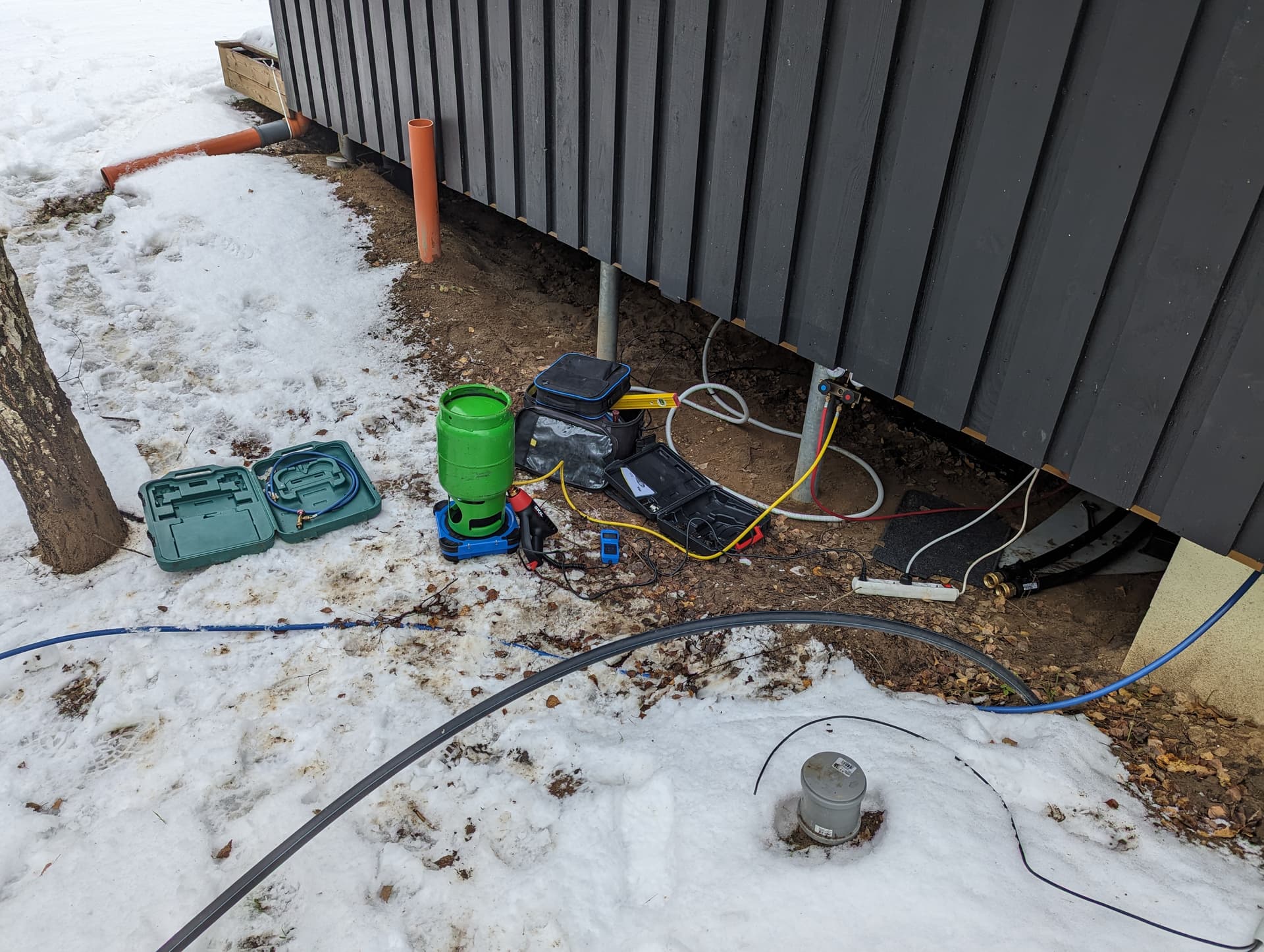 *Today’s job here is getting the ground loop filled and trying to get the heat pump proper running whilst the car can still get vaguely near.