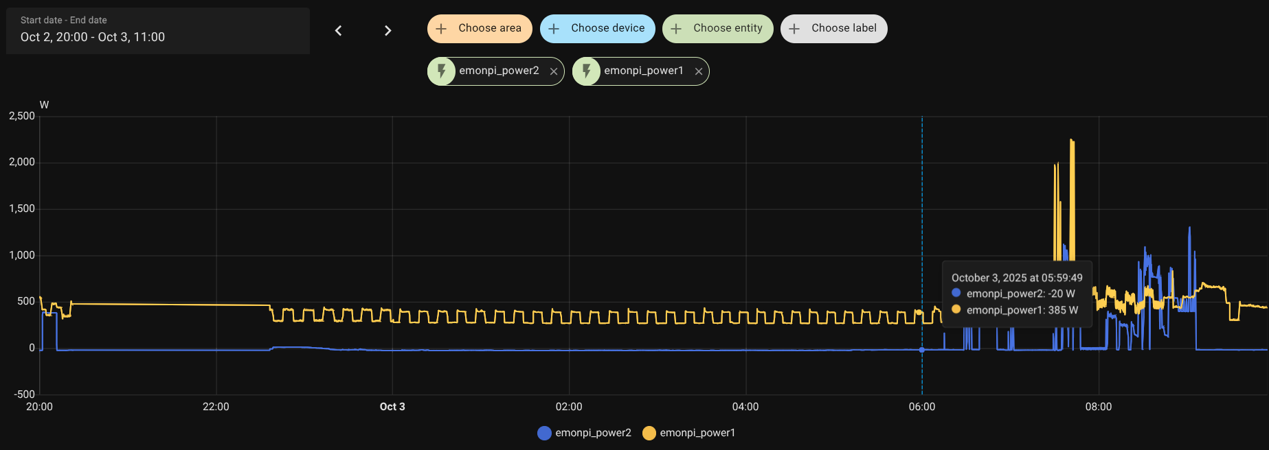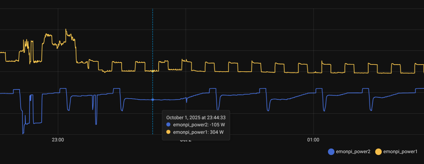 This graphic shows how CT 2 is showing a constant value of aroud -100W, with a strange behaviour during the night.