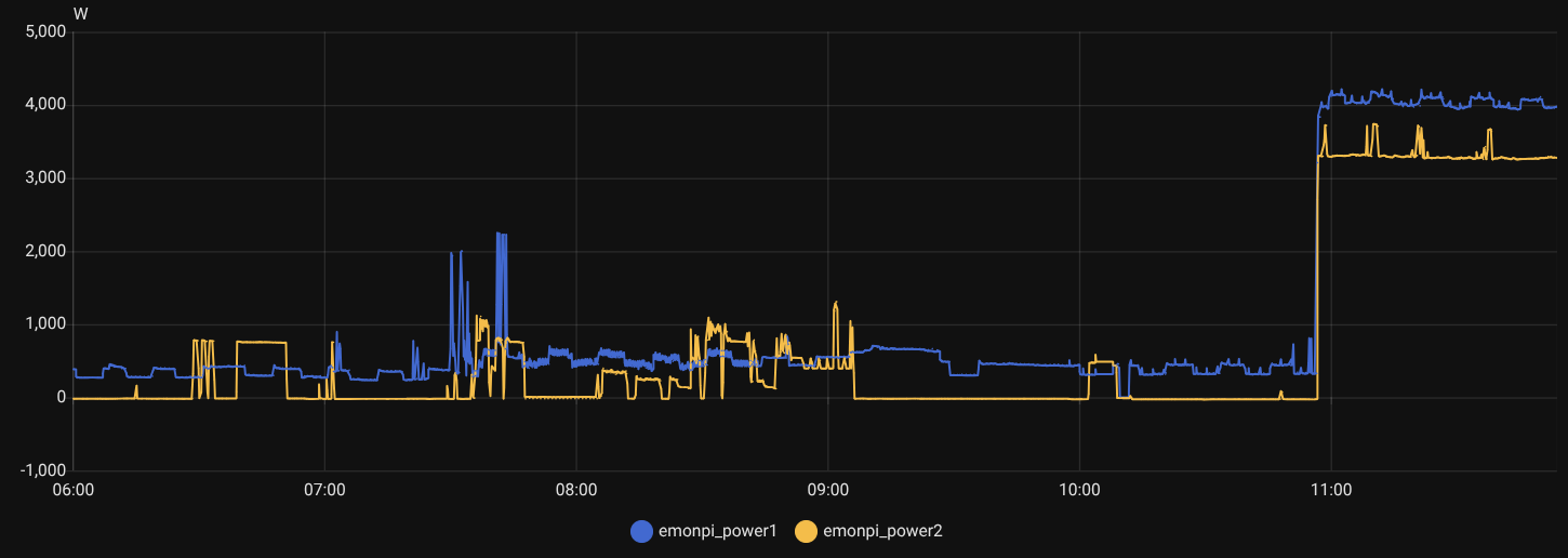 I recently upgraded my electric service from single phase (110V) to split-phase (220/110V). So I reconfigured my EmonPI to use the second CT in the second leg (previously I used it to monitor my solar panels).