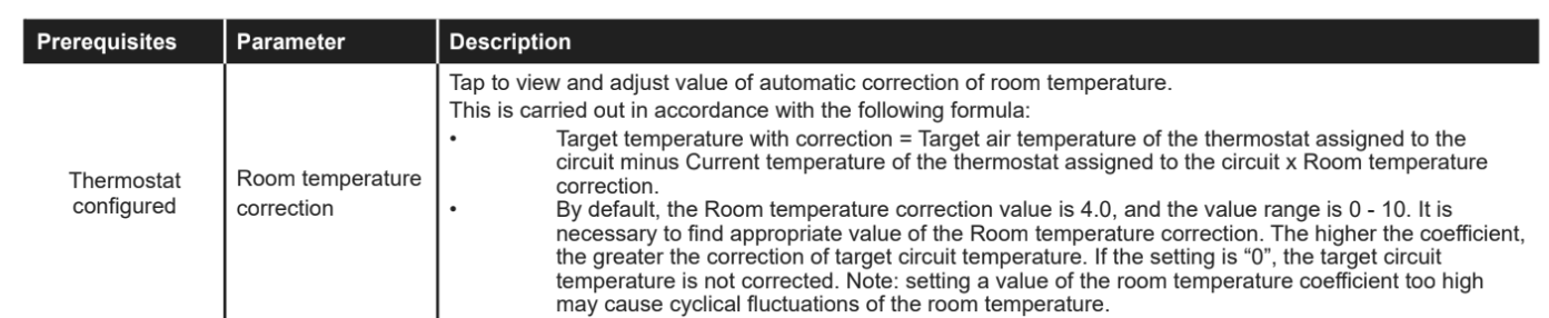 So let me work this out… oh that’s interesting, so it’s a bit like the Vaillant room influence? So if thermostat set at 21c and room is at 18c, normally would just use the WC curve + the circuit temp correction, but with room temp correction then presumably given the above it would add (21 - 18) * room_temp_correction, so: