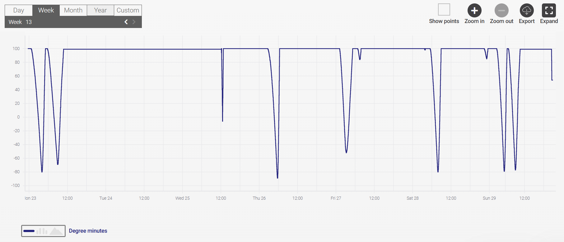 Some other NIBE users have been seeing DMs go highly-negative (e.g. -800) which is a sign than the heating demand is present but is not being satisfied - but you’re seeing the opposite