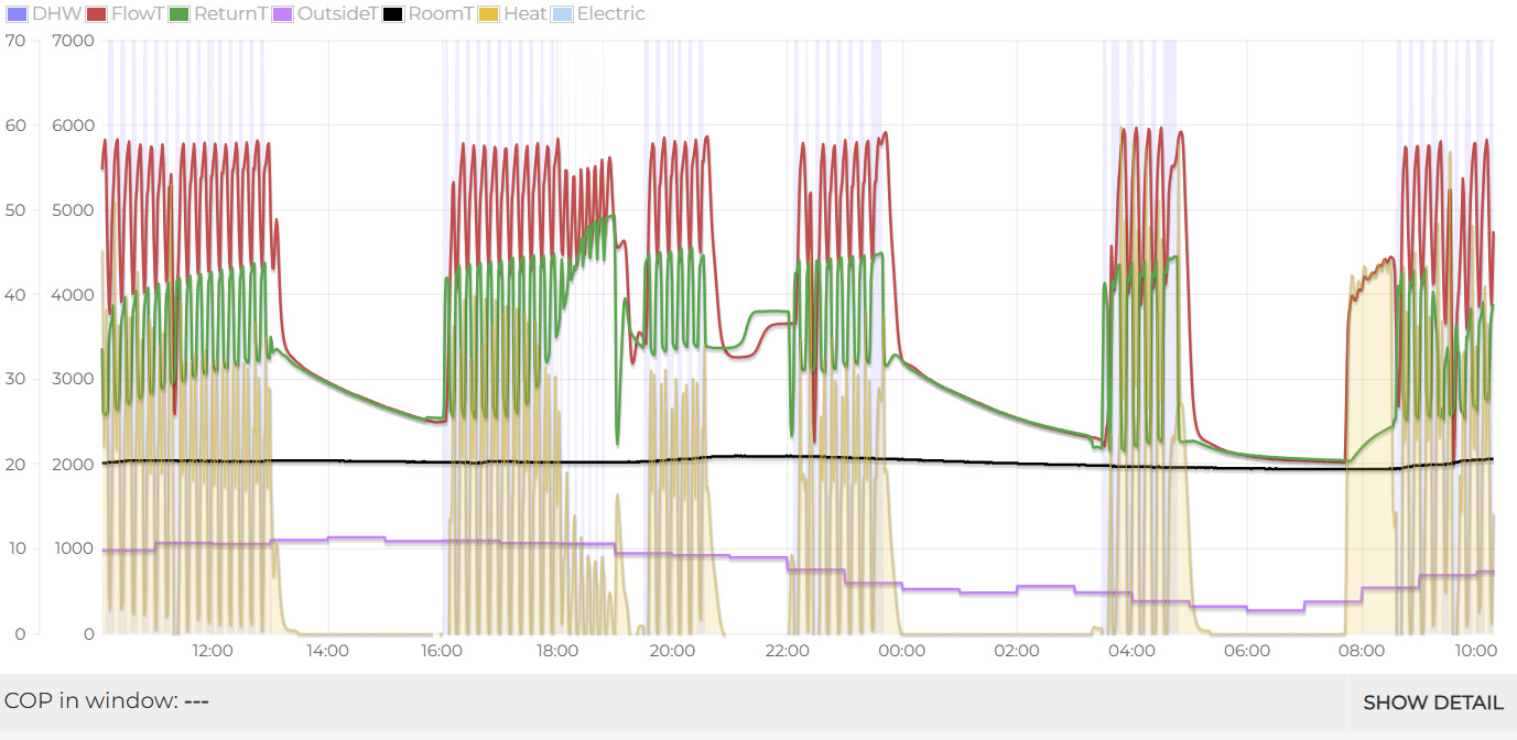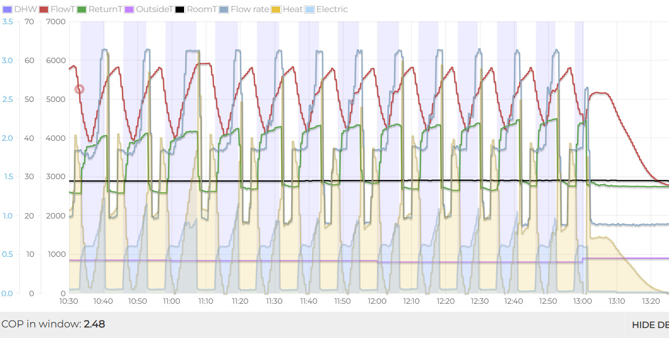 Below a plot showing with ‘Luxury’ hot water ON then OFF. The difference is “night & day”. Just goes to show check the simplest explanation first (settings) before jumping to more involved diagnoses.