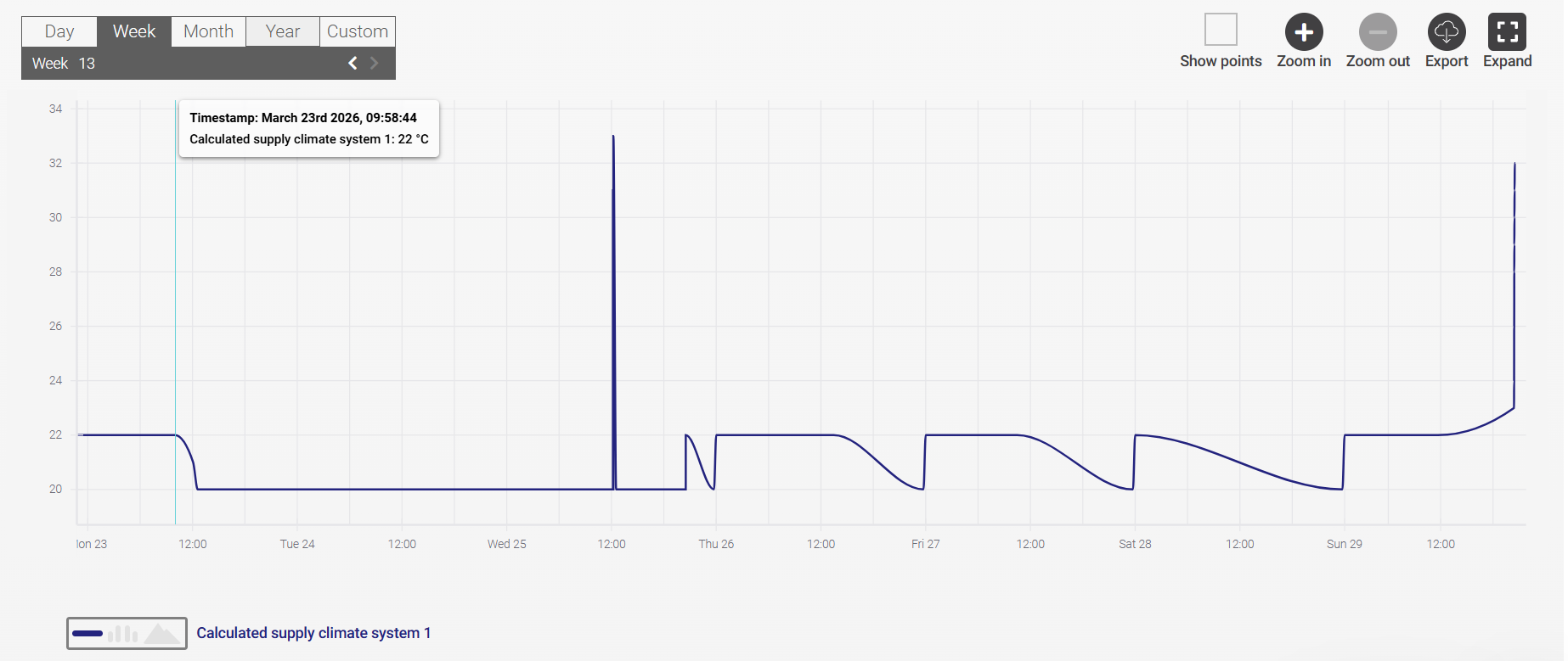 Parameter s1 I cant find that explicitly but can find “Calculated supply climate system 1” this shows that the target flow temp is very low around 22C.