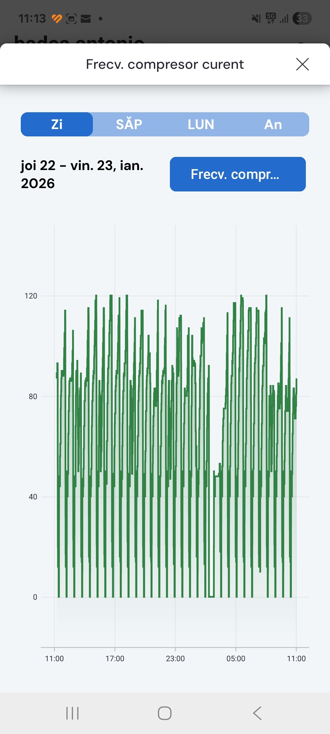 The indoor unit is located in the technical room. The indoor temperatures are not constant, and all graphs show large fluctuations. The compressor starts approximately 33 times per day. The house is well insulated, so that should not be the problem.