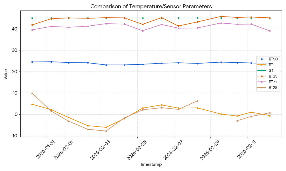 What sort of readings are you getting from sensor BT25 and how do those relate to the S1 target?