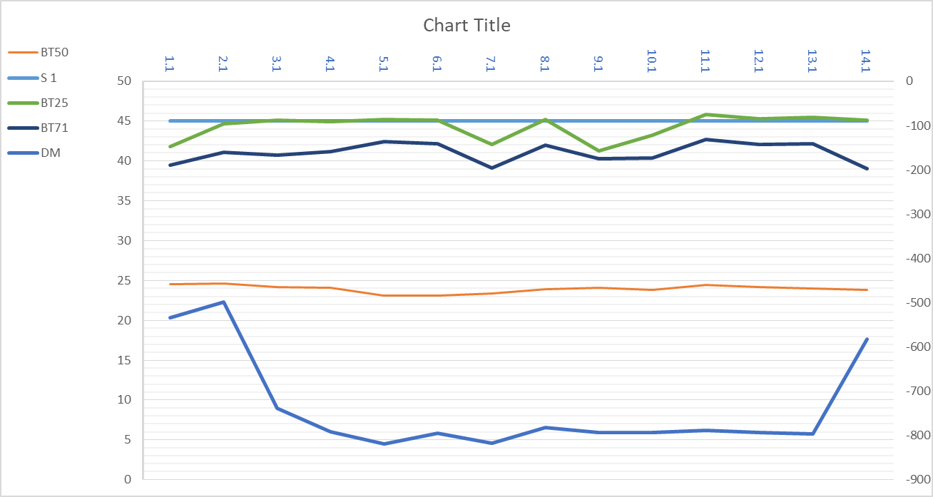 I can briefly describe the situation: Nibe F20240 10-16 pump, split, panel radiator heating, usable heating area 160 sq m, 2 levels. The pump works in parallel (if necessary) with a gas central heating system. Since the beginning of January, the pump has only been operating with a BT25-Bt71 difference is max. 3 degrees. Also, the Supply line set point is constantly 45.0 °C. DM constantly between -700 and -850. BT50 has no influence. Regardless of the outside temperature, the temperature in the house is approximately 24 degrees, the target being 21.5.