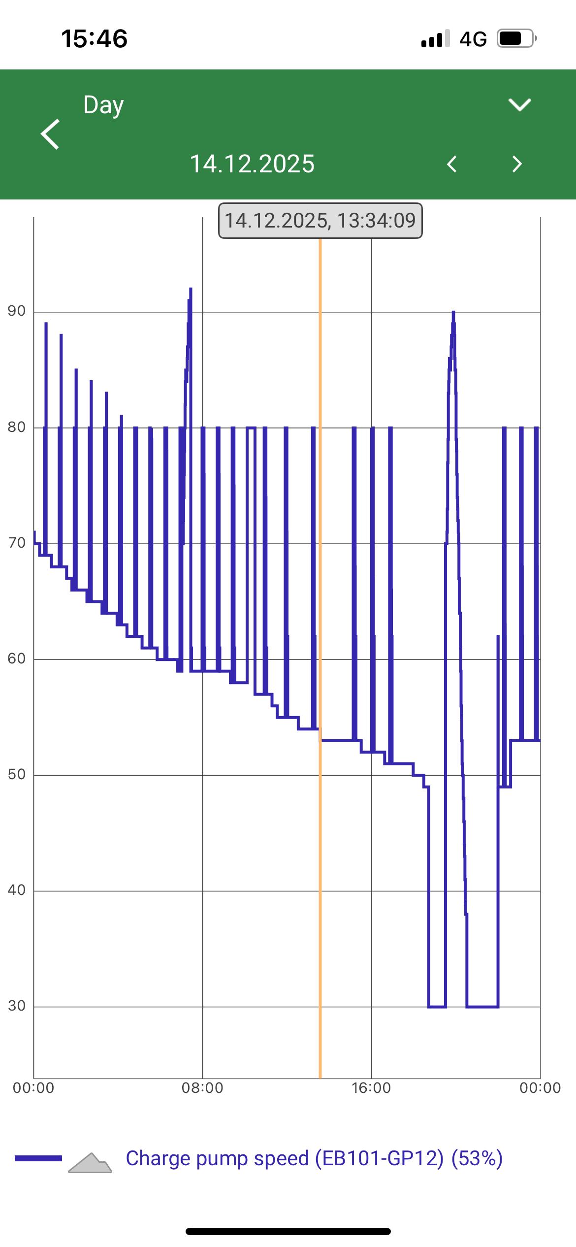Thanks for the GP12 Charge Pump Speed graphs. I was wondering if the pump speed might be really low (e.g. 20%) but it seems to always be over 50% while it’s heating - which isn’t crazy, but since the Charge pump is being ‘overtaken’ by the two Grundfos pumps it should be higher than 50%.