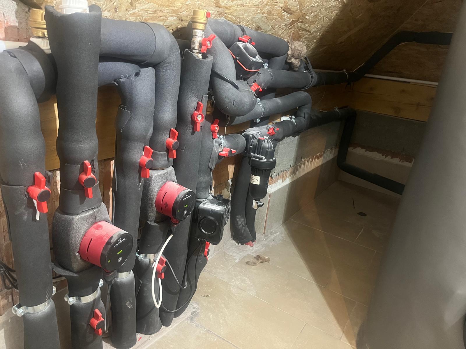 Worth mentioning that the installation room I’m filming is located in the attic. The heat pump external unit it’s next to the house at the ground, so there are approximately 15meters till it gets to the installation room, from the instalattion room it goes down to the 1st manifold which is 1st floor and 2nd which is on groundfloor
