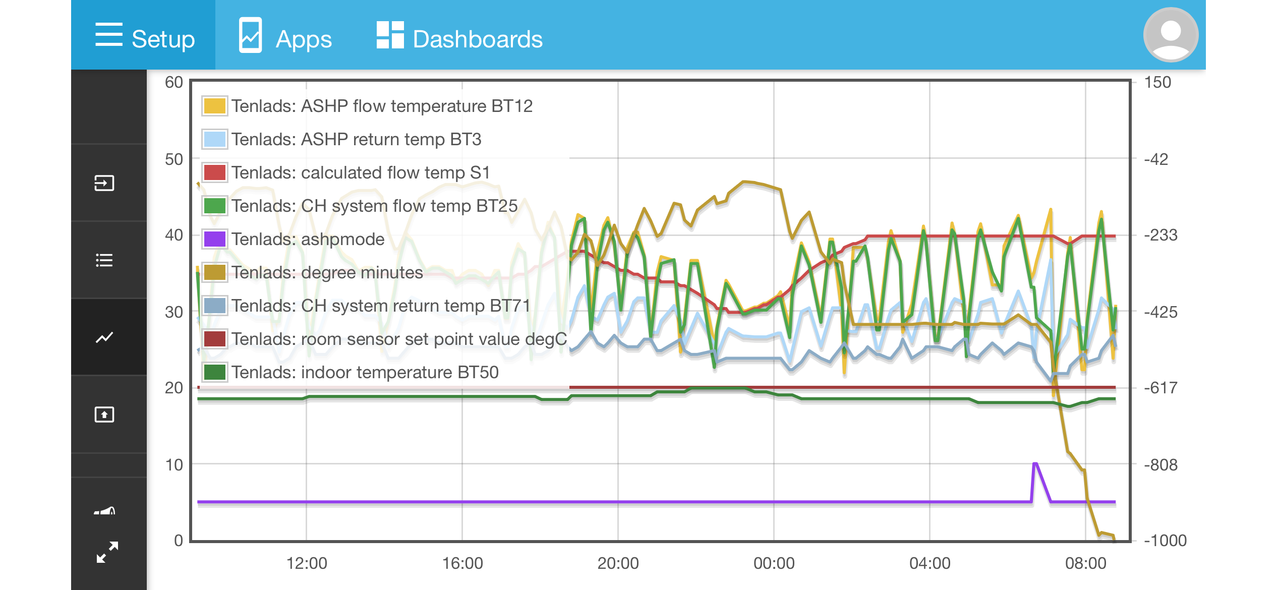 Interesting that it managed to hold steady at about -450 DMs from around 01:30 until around 07:00 when a DHW cycle (and the resulting defrost) pushed it ‘over the edge’.