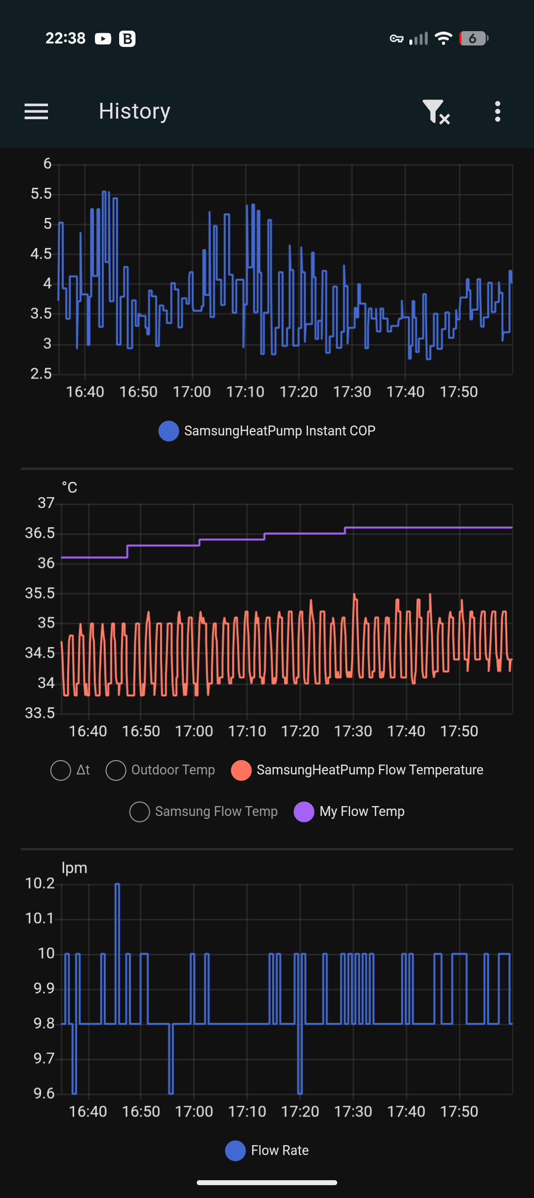 What is interesting to see in your graph is that after a bit of oscillation, the lwt stabilises, mine lately has been just oscillating. In all fairness I’ve stopped using water law from Samsung and implemented my own water law defining the lwt temperature directly based on the linear function.