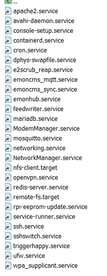 Hi all. I’ve not been around much because Discourse now only works in one browser and emoncms has just been humming along fine for me… until this morning! I’m trying to rescue an emonsd install after a power cut in today’s storm (but I already have the data backed up just in case). It mostly looks OK now except that some services aren’t starting. I think /etc/systemd/system/multi-user.target.wants/ looks a bit bare - can someone with a working emonsd tell me what theirs contains, please?