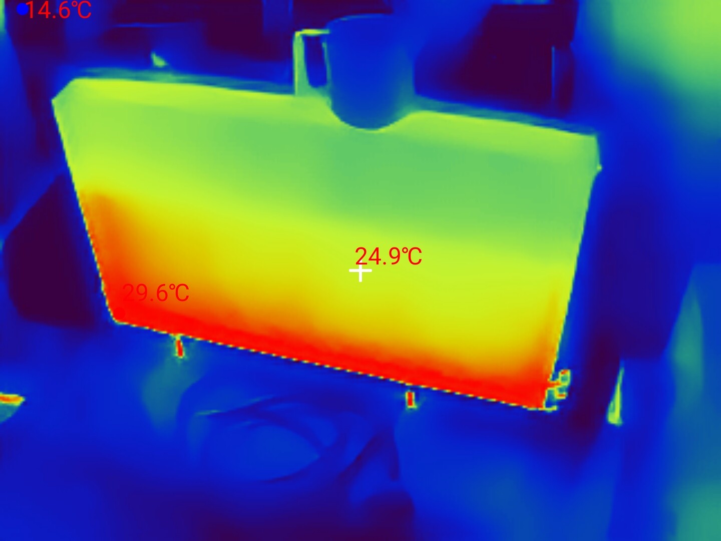 I have been trying to get the HP to do the bulk of our heating overnight when IOG is very cheap, and then only run at minimum power during the day if absolutely necessary. I took the original thermal pictures during one of those daytime, minimum power runs, when deltaT was low (about 2 degC). Predictably, I cannot get the HP to start really gently today, and the thermal pictures all look like b). I’ll keep trying!