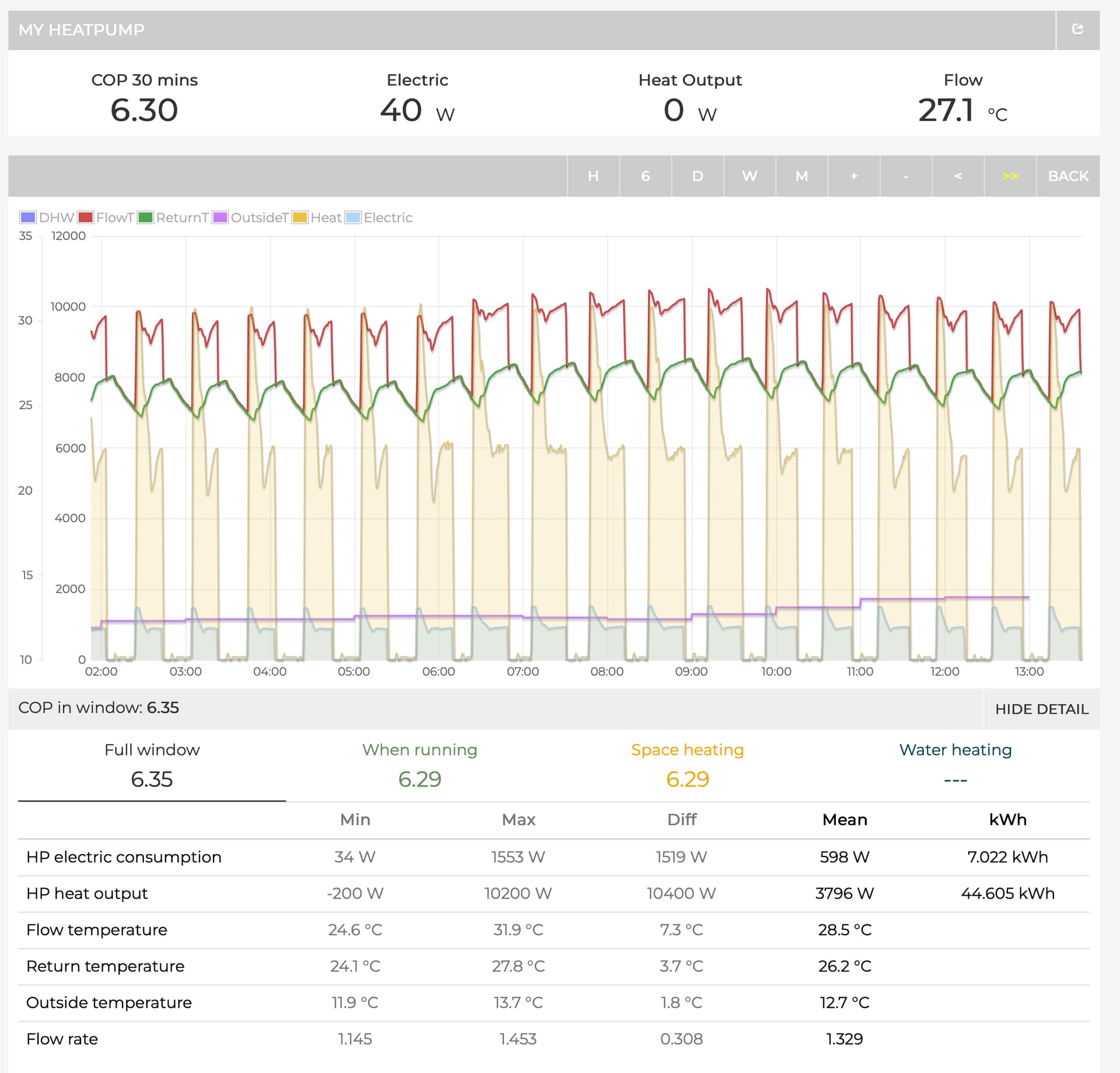 The green line is the flow temp HC1 is asking for, which matches the heat curve and indoor temp setting combination. Grey is the hmu target temp and red is flow temp.
