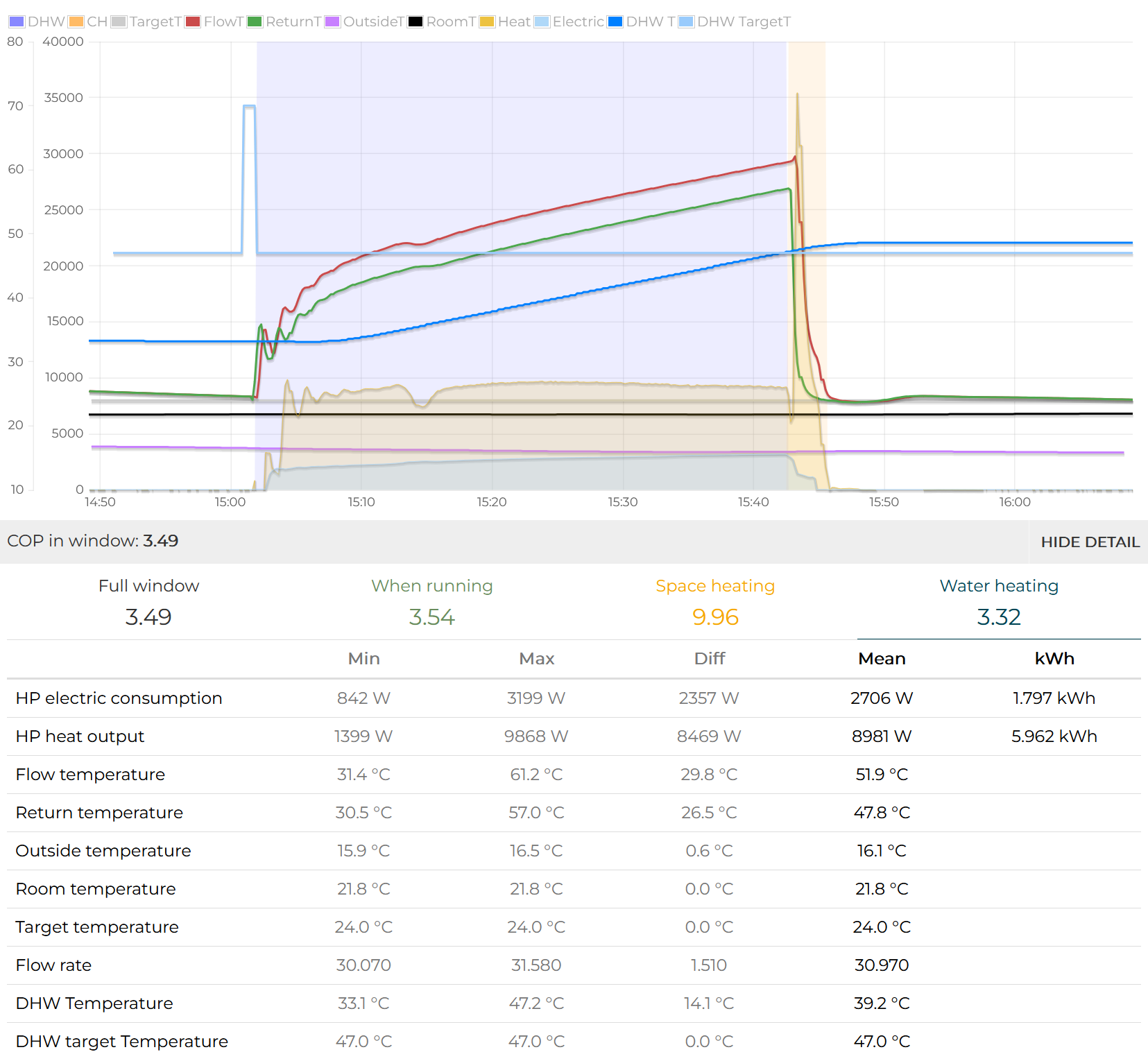 , as this will be extra helpful. Have your pick looking at the data with either the central NTC10K sensor installed in the tank that’s used by the Vaillant controller or my self-installed sensor at the top of the tank.