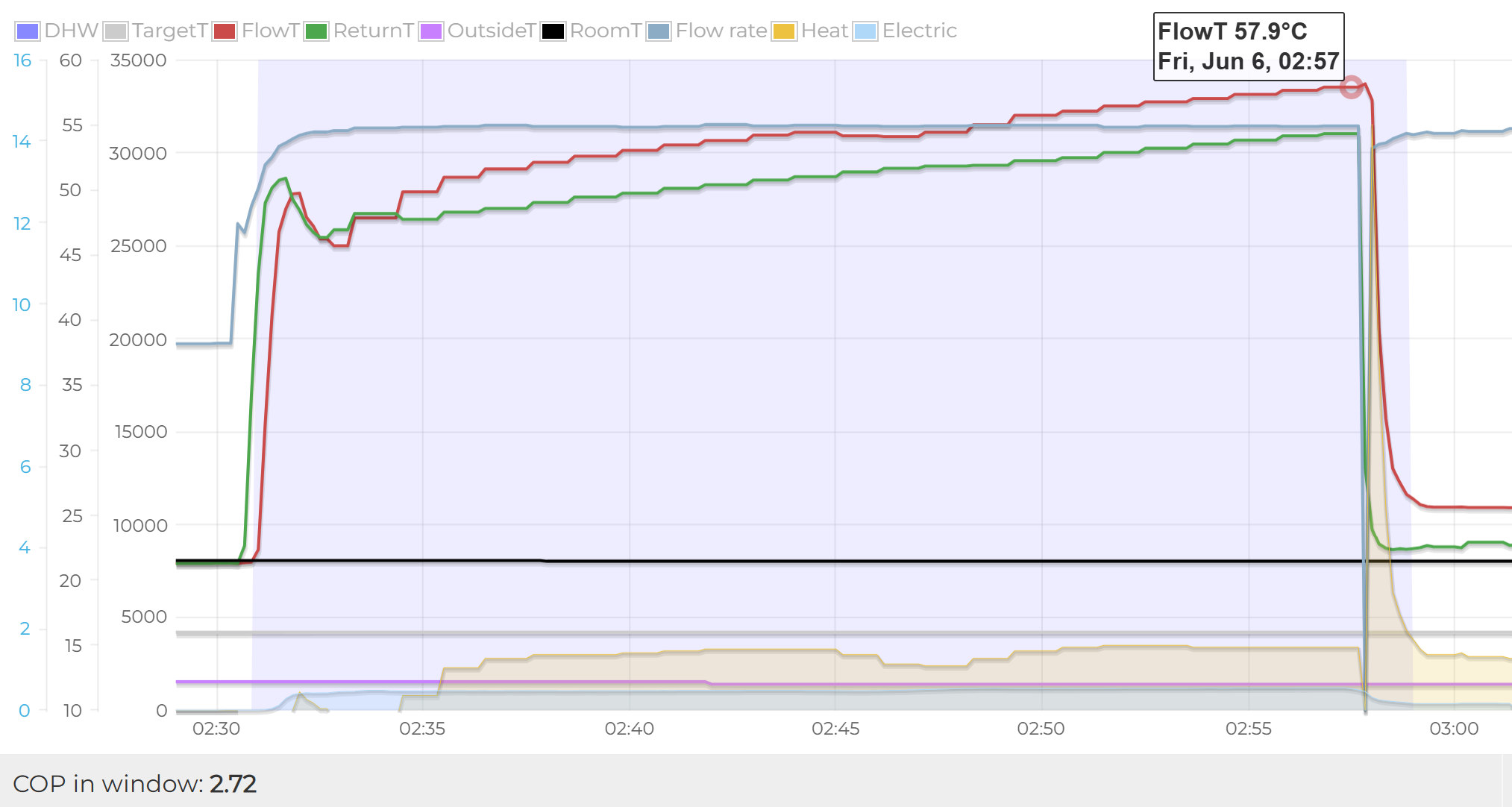 Should the flow temp be rising so high when doing the DHW cycle?